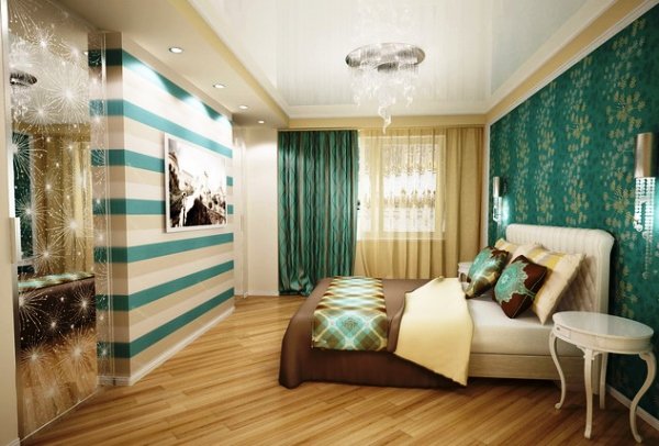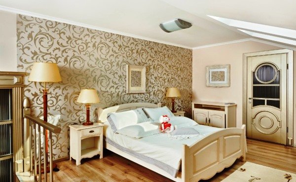 Варианты поклейки в спальне